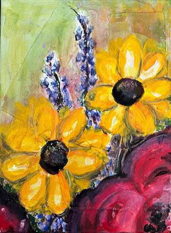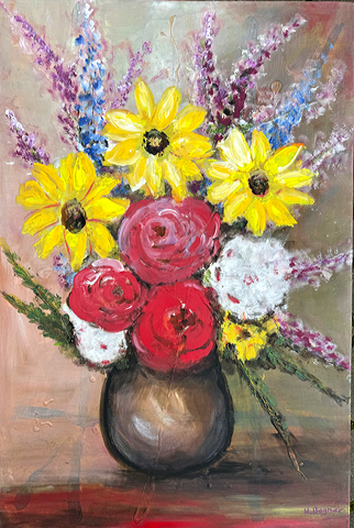 Halber Herbstblumenstrauß, Original Acryl-Malerei auf Leinwand. 30 x 40 cm. 129€